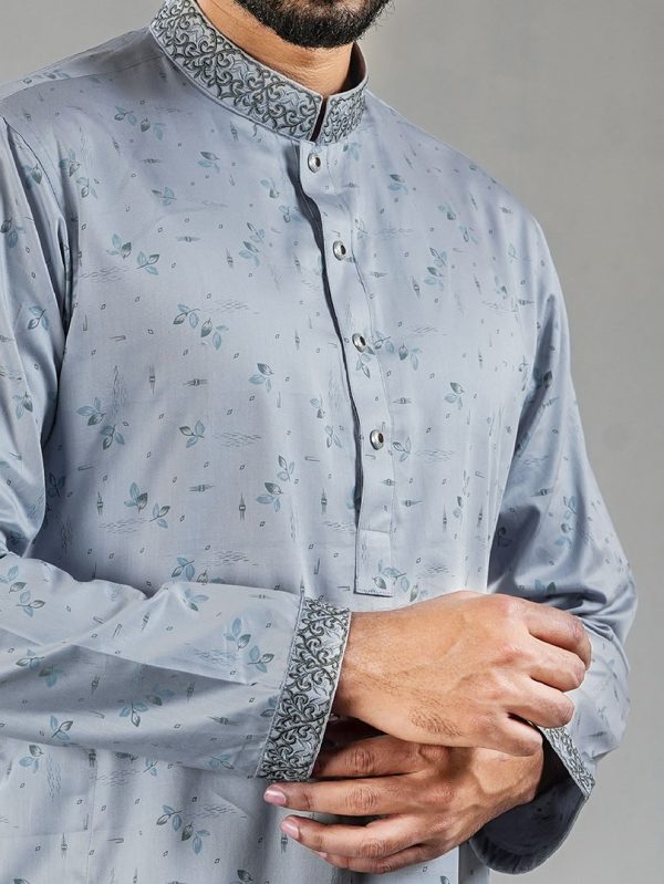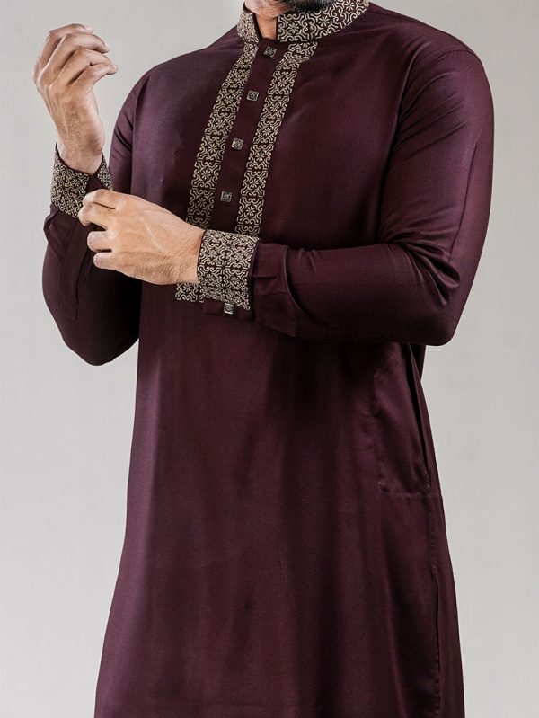 Elevate your style with our trendy Panjabi featuring hand embroidery, elegant metal clasp buttons, and comfortable fabric. Perfect for the modern trendsetter seeking sophistication with a twist.