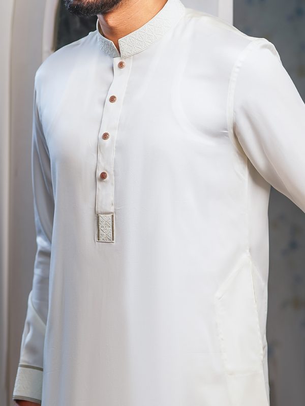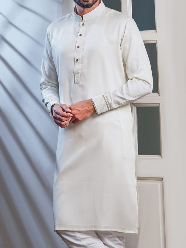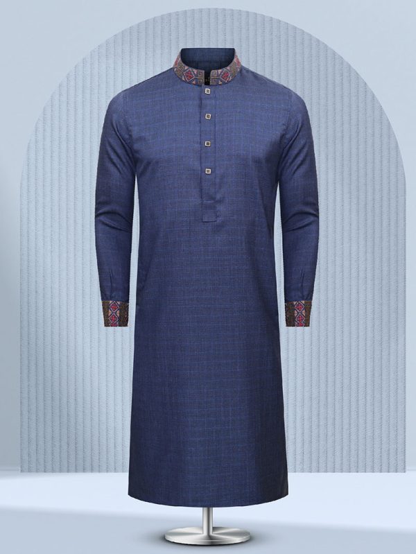 Elevate your style with our trendy Panjabi featuring hand embroidery, elegant metal clasp buttons, and comfortable fabric. Perfect for the modern trendsetter seeking sophistication with a twist.