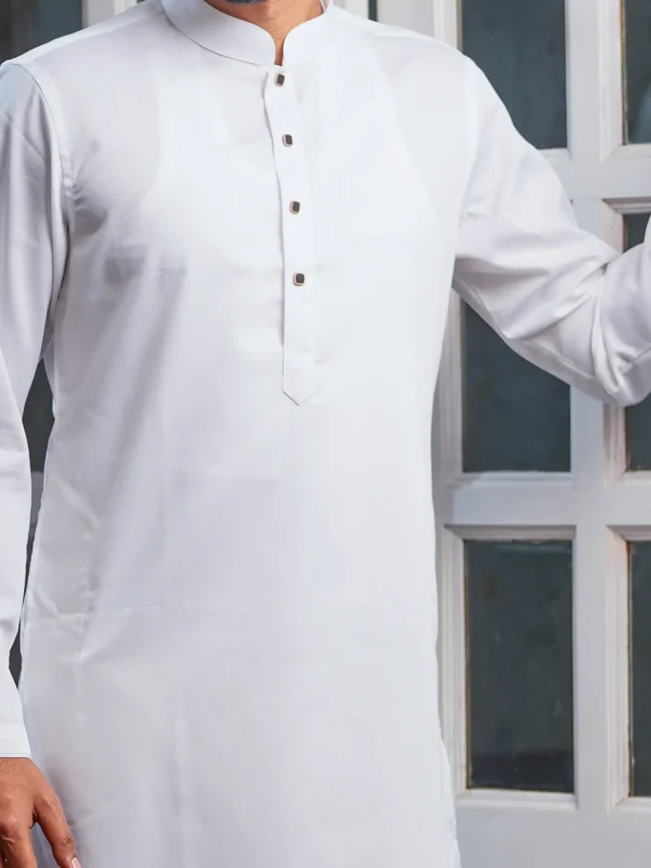 Elevate your traditional style with the Emerald Elegance panjabi, crafted for those who appreciate sophistication in every detail. This exquisite white ensemble features intricate light yellow embroidery, meticulously woven along the placket, cuffs, and collar, adding a touch of refined charm. The soft, premium fabric ensures unmatched comfort, making it perfect for festive occasions, prayers, or elegant gatherings. With its minimal yet luxurious design, Emerald Elegance is a timeless piece that blends heritage with modern grace.
